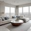 Grosszügiger Wohnraum mit Panoramafenstern und Designer-Möbeln für entspanntes Wohnen.